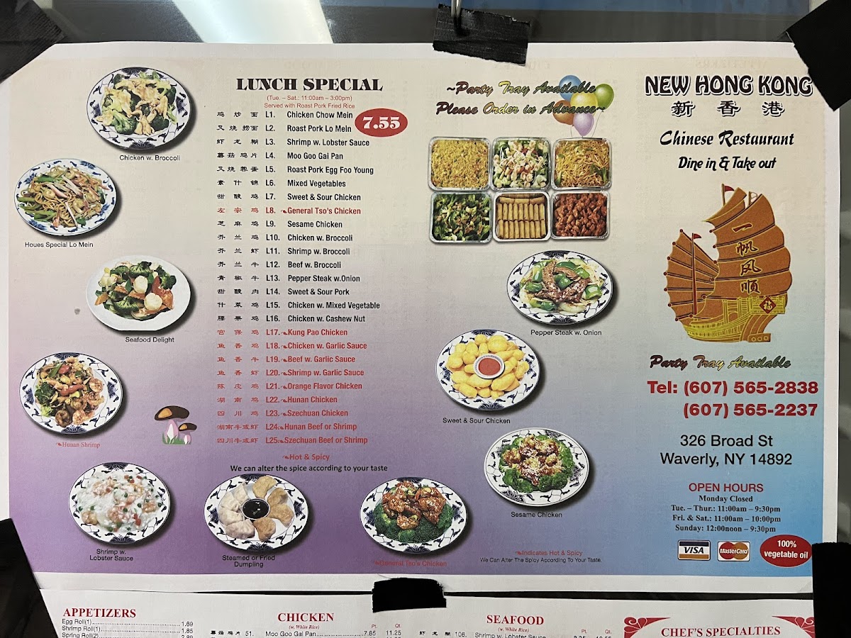 Welcome to New Hong Kong - Waverly, a delightful culinary gem located at 326 Broad St, Waverly, NY. This charming restaurant offers a robust menu that captures the essence of authentic Chinese cuisine. Highlights include their signature Egg Foo Young, available in various delightful options such as Vegetable, Roast Pork, and the House Special, all reasonably priced from $10.35 to $11.35.